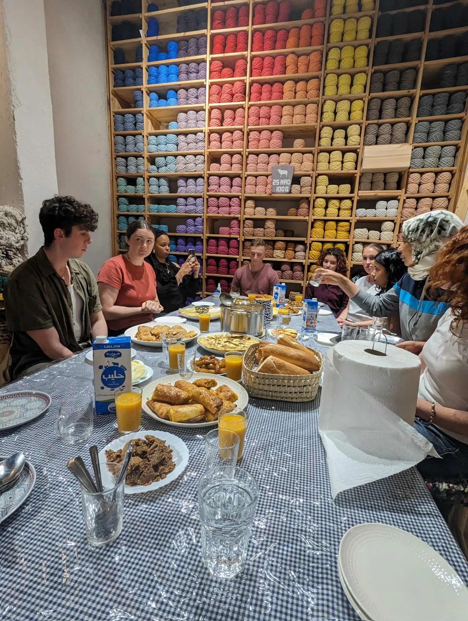 On our tour, we stopped into a store that sold goods they weaved themselves. We got to see the loom they use to make their goods and then tried on some handmade headscarves.
