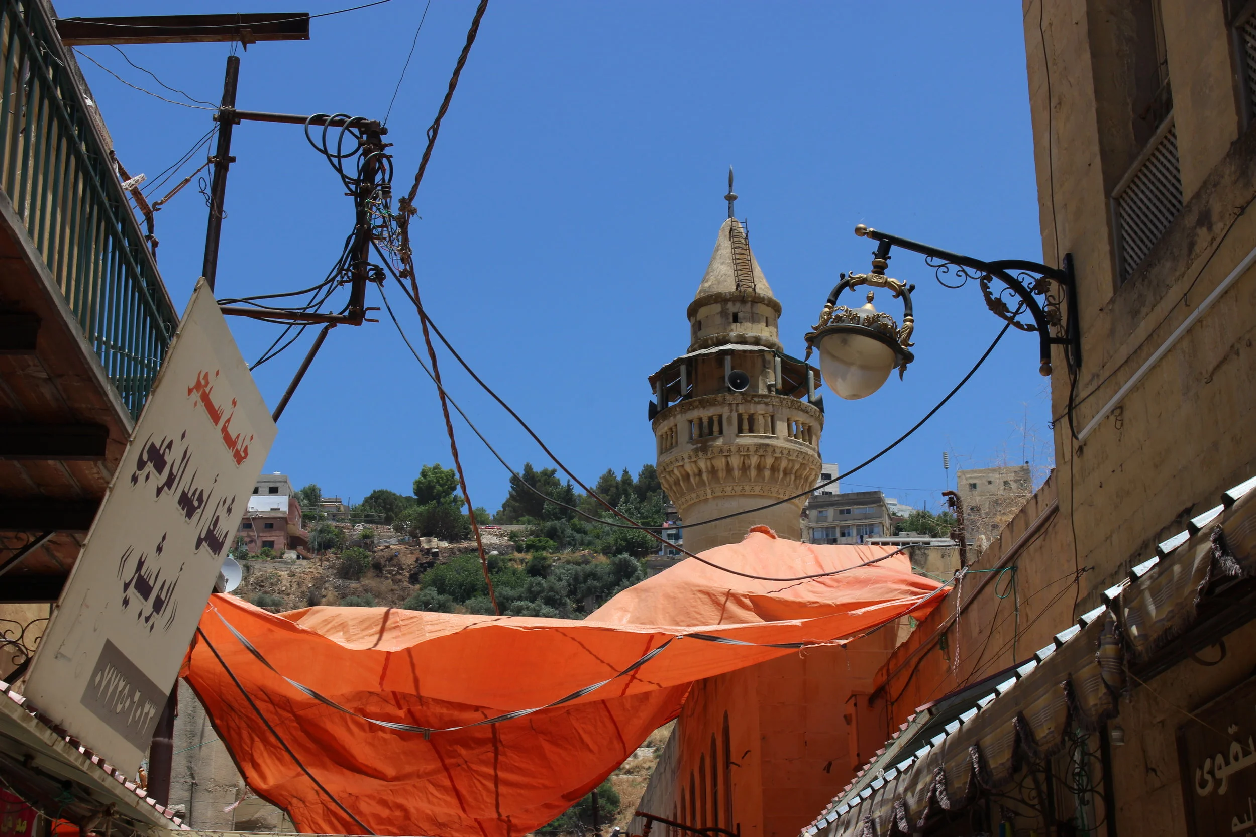 Dancing in the sunlight, this orange cloth shaded buyers and sellers at the As Salt Suuq on Hamman Street. Photo credit: Jessen, 2019