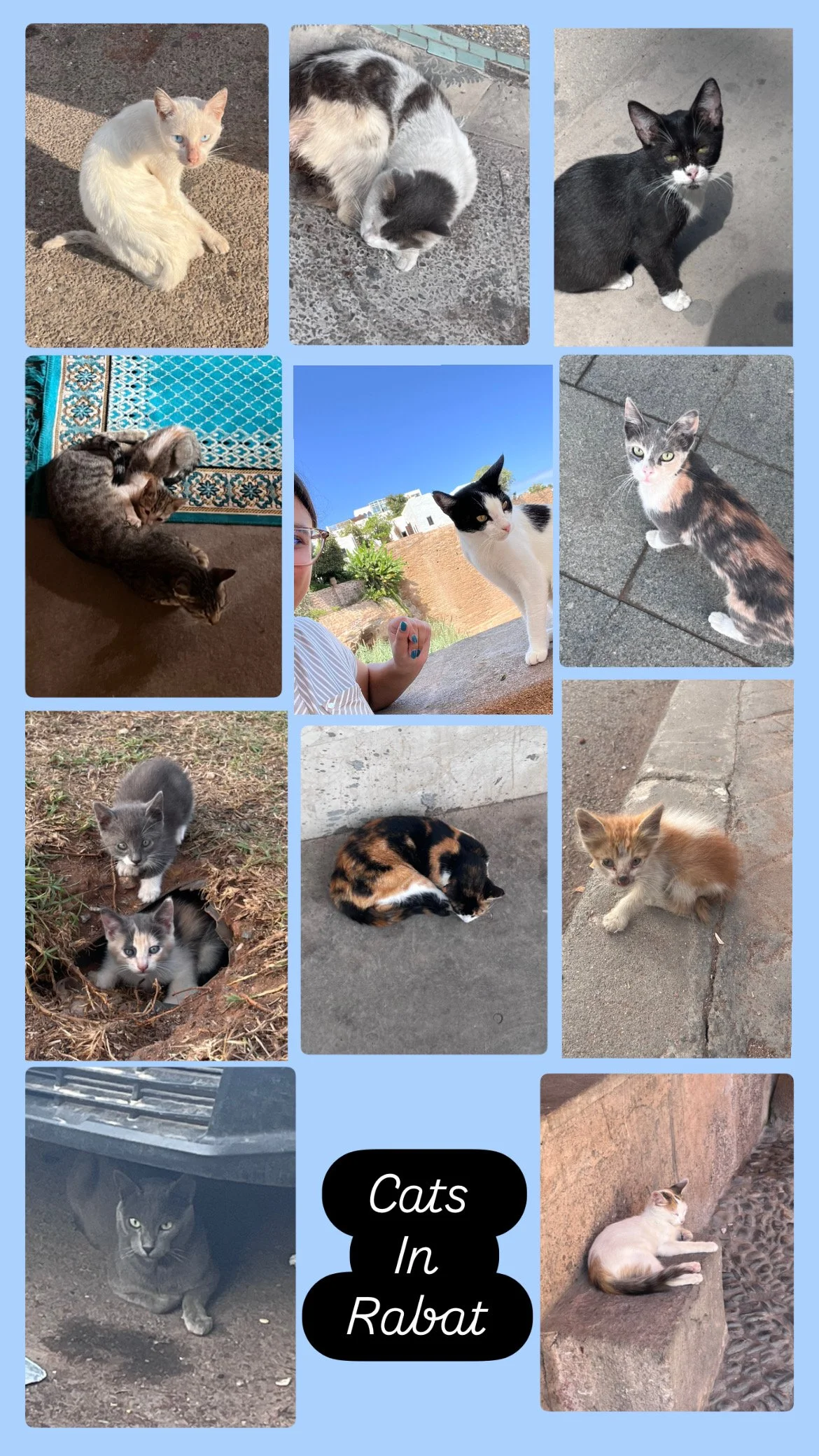 One of my favorite aspects of life in Morocco is the way that the community cares for its cats. Rabat alone likely has thousands of feral cats living on the streets. For the most part, these cats are content. They are given food and water by the citizens, however they rarely receive veterinary care. Every cat I have encountered has been extremely friendly! Some are a bit distrusting, but most just want a little head scratch!