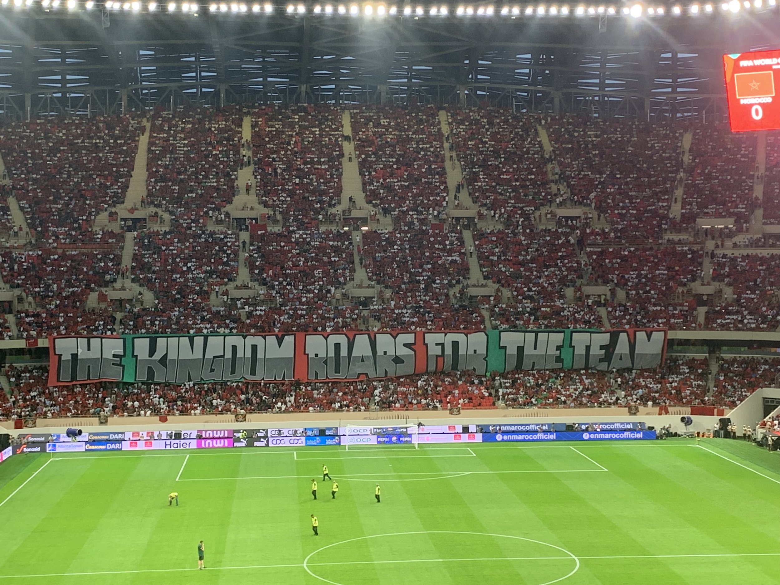 Another highlight from my first two weeks was going to a Morocco World Cup qualifier soccer match in their brand new 70,000 seat stadium. The stadium was packed with fans and full of energy and the banners and choreography were really cool to watch. Photo credit: von Sauer, 2025.